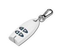 Slouží k ovládání systému a lze ji připnout na svazek klíčů. Kromě zapnutí a vypnutí střežení může být použita k vyvolání tichého tísňového poplachu. Klíčenku lze v případě potřeby také nastavit pro ovládání jiných spotřebičů (garážová vrata, osvětlení apod.). |